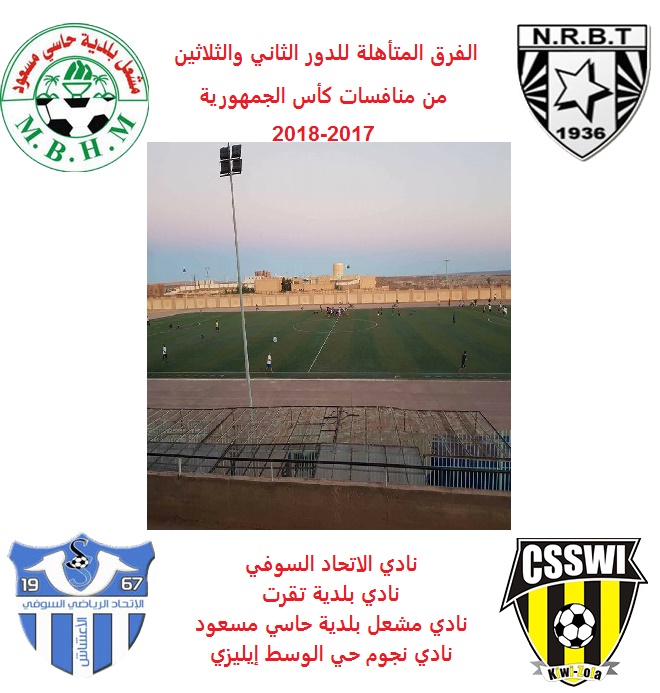 الاتحاد السوفي USS / نجوم حي الوسط إيليزي CSSWI / نادي بلدية تقرت NRBT / مشعل بلدية حاسي مسعود MBHM