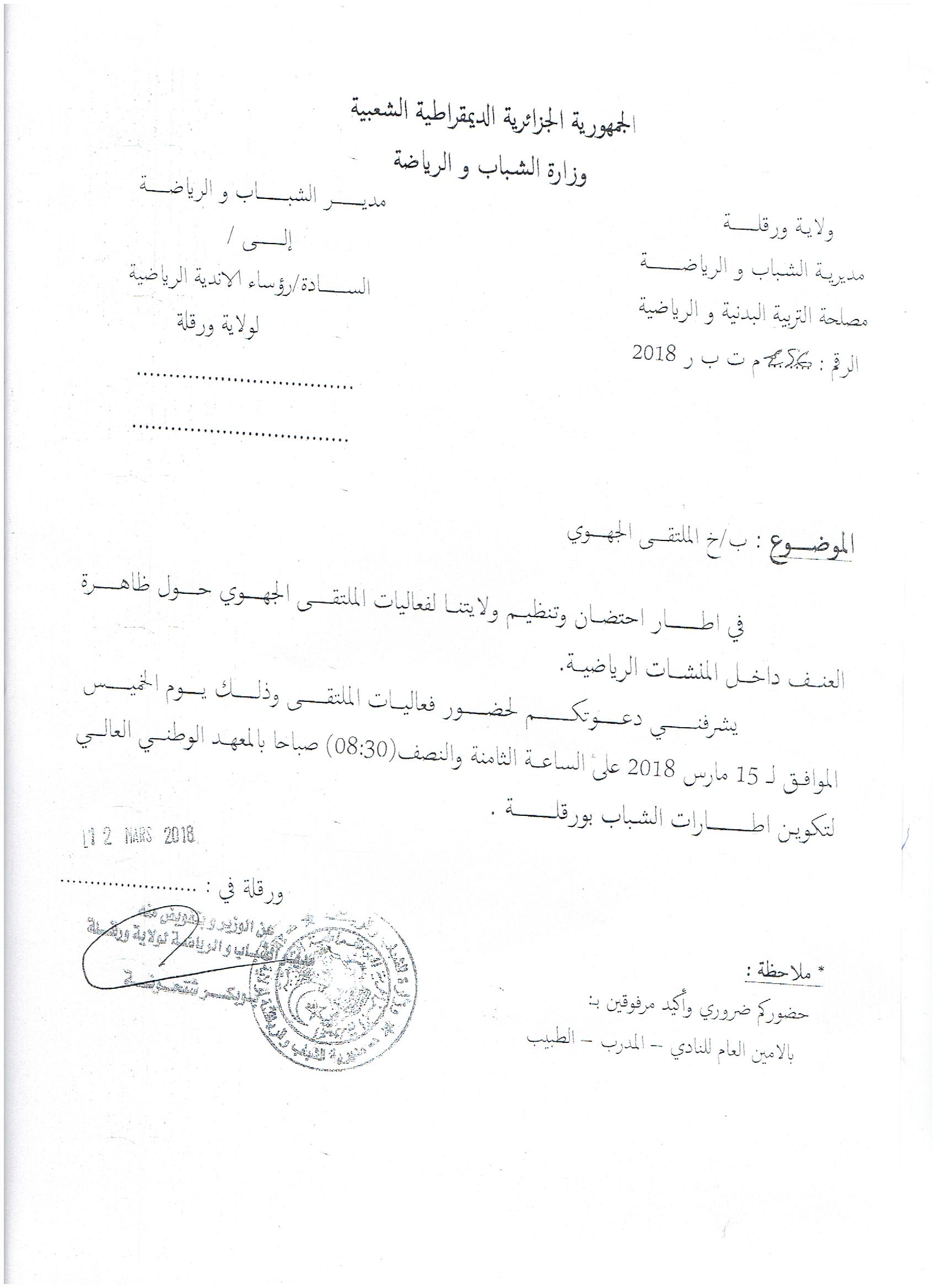 الملتقى الجهوي حول ظاهرة العنف في المنشآت الرياضية