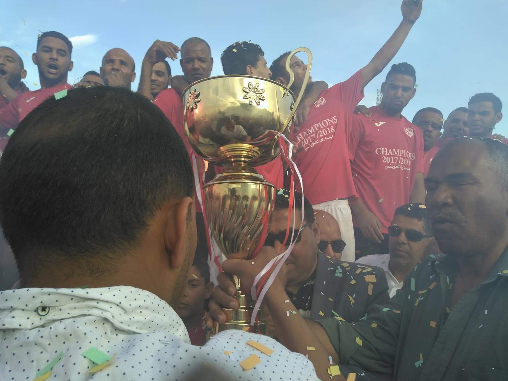 بمناسبة تتويج النادي الرياضي أولمبي المقرن بطلا للقسم الجهوي الأول " " للموسم الرياضي 2017-2018 وصعوده لقسم ما بين الرابطات ، تم تسليم درع البطل من طرف السيد عيساوي الساسي ممثلا عن السيد رئيس الرابطة وبحضور السلطات المحلية على رأسهم السيد مدير الشباب والرياضة لولاية الوادي، رئيس المجلس الشعبي البلدي المقرن .