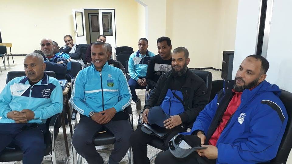 أشرف صبيحة اليوم السيد علي باعمر رئيس الرابطة على افتتاح تربص المدربين DFE3 التجمع الثاني بقاعة الملعب البلدي 24 فبراير ورقلة بحضور السادة اعضاء المديرية الفنية الجهوية والمتربصين.