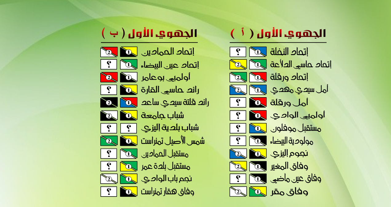 تطبيقا للمادة 58 من قانون البطولات الهاوية، إليكم قائمة ألوان الفرق المنخرطة لدى الرابطة بقسميها الجهوي الأول (أ) و (ب) الجهوي الثاني (أ) ، (ب) و (ج)