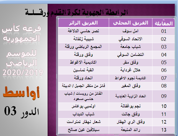قرعة كأس الجمهورية لفئة أقل من 19 سنة