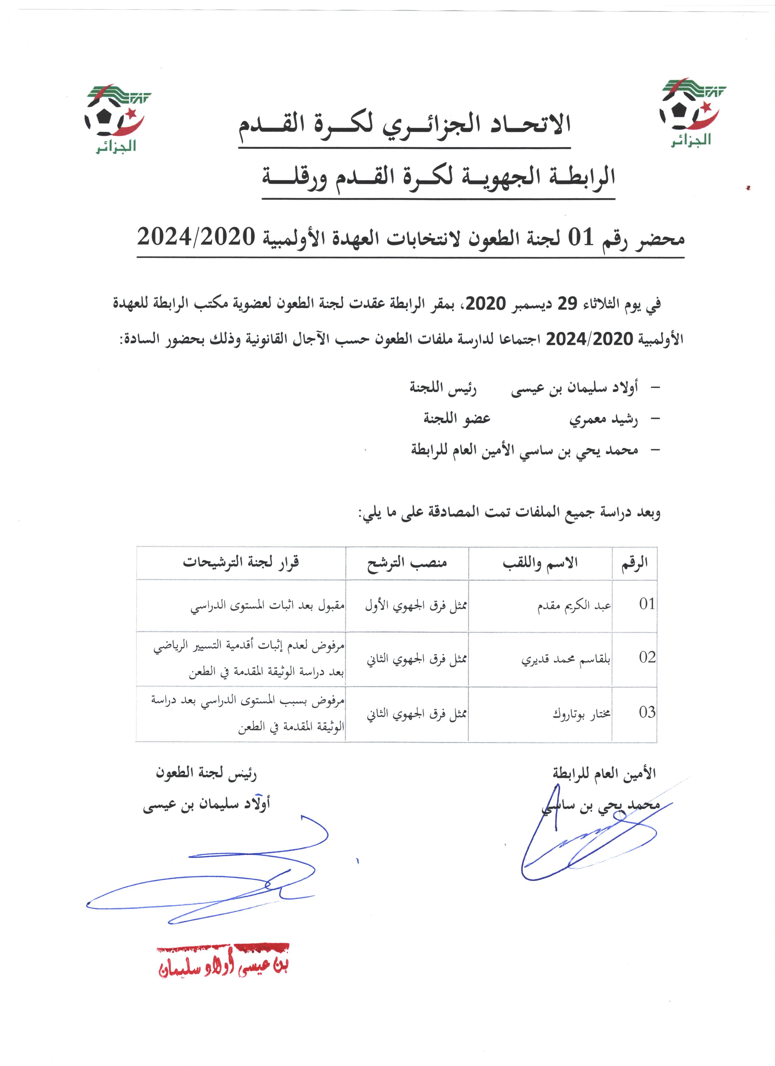 محضر لجنة الطعون لانتخابات العهدة الأولمبية 2020/2024