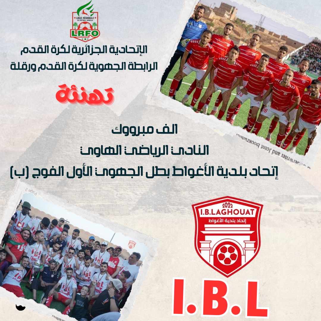 توج النادي الرياضي اتحاد بلدية الأغواط ببطولة القسم الجهوي الأول المجموعة "ب" ، ليرسم صعوده رسميا للقسم الوطني الثالث هواة، أين تم تسليم كأس البطل من طرف السيد محمد يحي بن ساسي الأمين العام الرابطة الجهوية لكرة القدم ورقلة رفقة كل من السادة اعضاء مكتب الرابطة الساسي عيساوي ، بشير بشيري ،