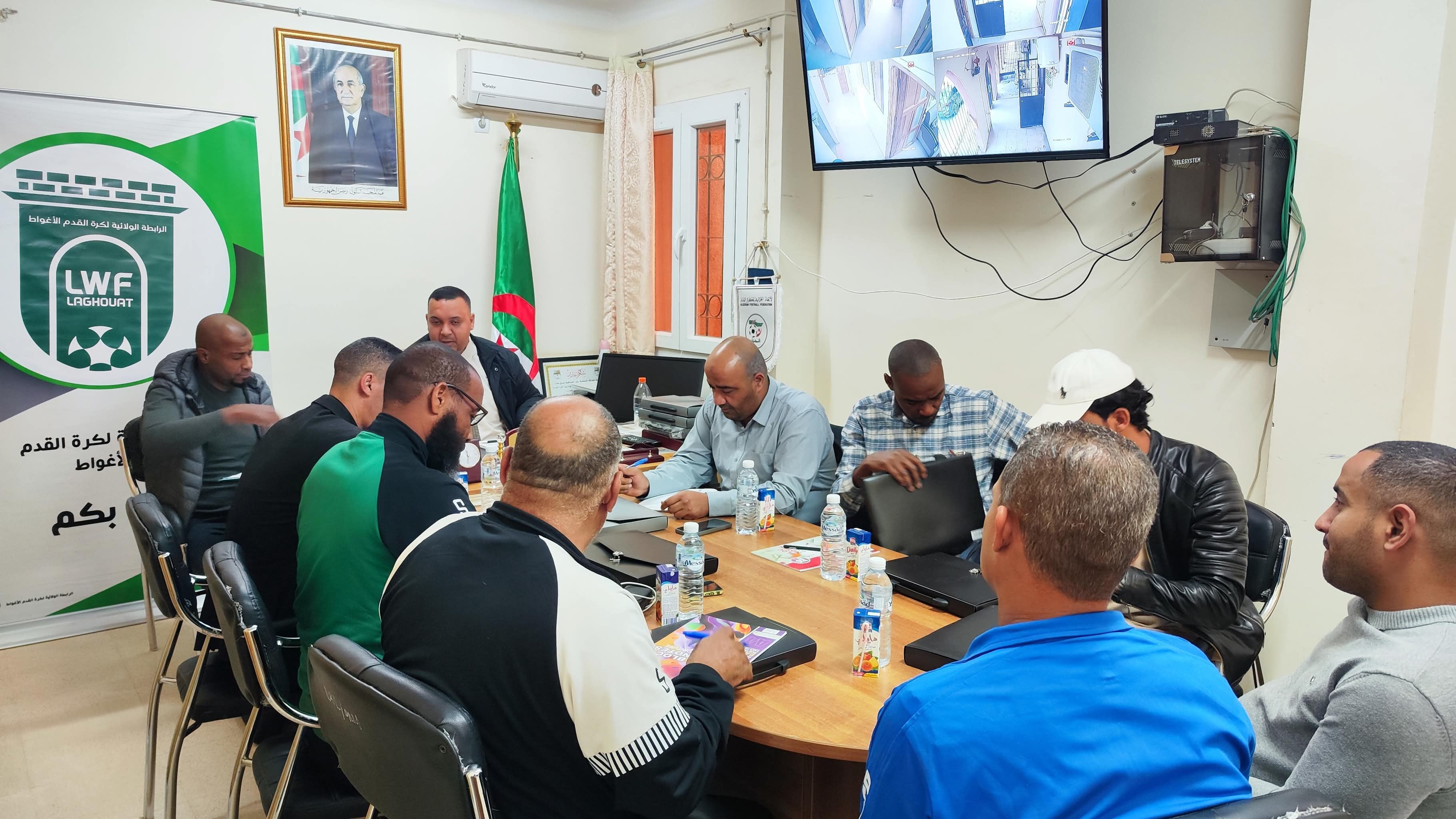 بحضور كل من السيد خيراني محمد رئيس الرابطة الولائية لكرة القدم الأغواط و أسامة تخي الأمين العام للرابطة الولائية لكرة القدم الأغواط و حاوي عبد الكريم عضو مكتب الرابطة مكلف بالتحكيم وكذا بن حمزة أمحمد مكلف بمدارس التحكيم و رؤساء لجان الولائية للرابطات الولائية الأغواط، غرداية، ورقلة ، الوادي، المغير و تقرت.