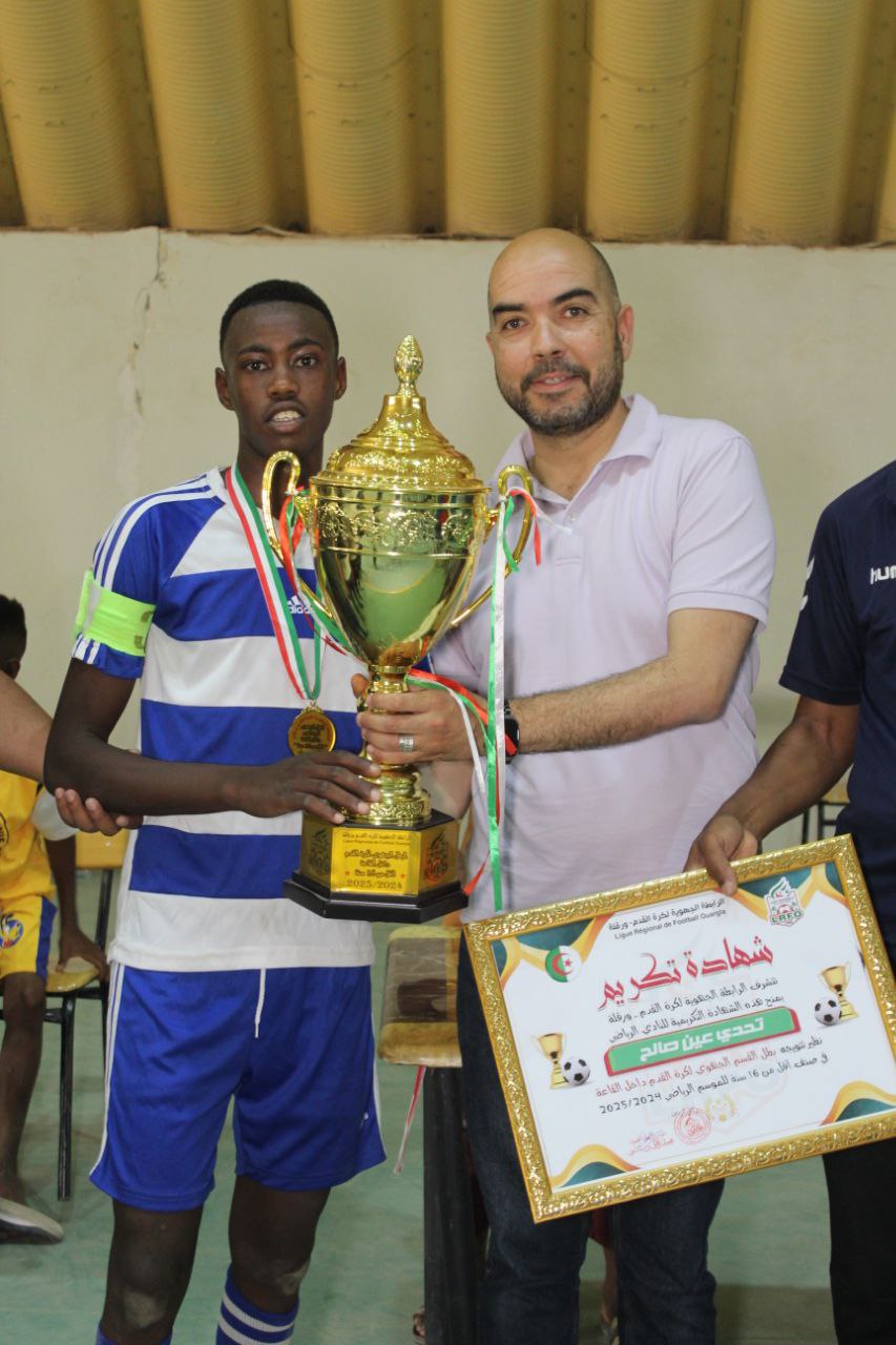 جرت صبيحة اليوم الجمعة 9 ماي 2025 دورة تحديد البطل الجهوي لأقل من 16 سنة لكرة القدم داخل القاعة بقاعة 24 فبراير بورقلة والمسماة باسم المرحوم بوليفة عبد المجيد توج فريق تحدي عين صالح بلقب البطل الجهوي بعد احتلاله المرتبة الأولى