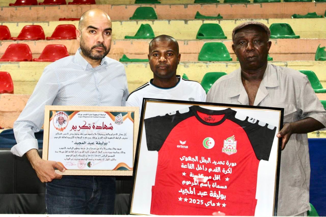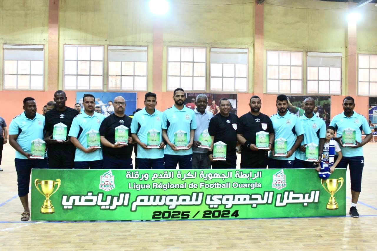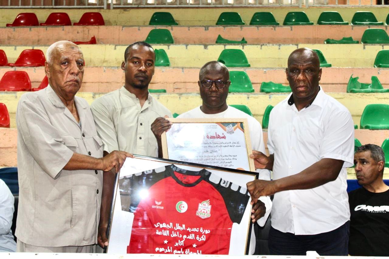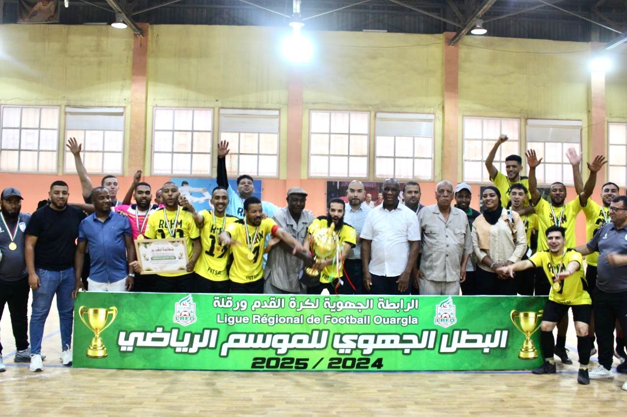 تم تسليم كأس البطل من طرف السيد محمد على الحليم شرع نائب رئيس الرابطة الجهوية لكرة القدم ورقلة رفقة حسان غولة عضو المكتب الفيدرالي وعشي أسكندر نائب الثاني لرئيس الرابطة الجهوية لكرة القدم ورقلة والمكلف بكرة القدم داخل القاعة وبحضور كل من السادة اعضاء مكتب الرابطة:جلول كحلول، بن دادي بسمة ،منير طويل ، عصماني ياسين و كذا مدير قاعة القطب الرياضي بورقلة واعضاء لجنة كرة القدم داخل القاعة.